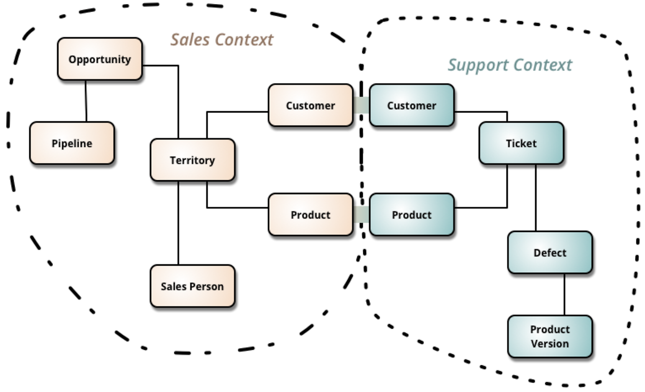 - 바운디드 컨텍스트는 도메인 모델을 구분하는 경계가 되기 때문에