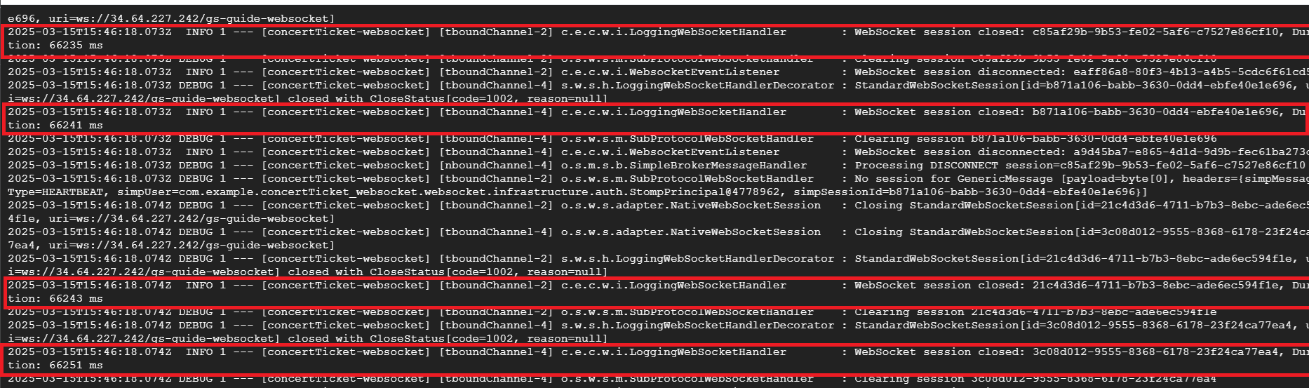 따라서 웹소켓 세션의 유지 시간이 충분히 확보될 수 있도록 서버 측 성능 최적화 및 로직 개선이 필요했습니다.