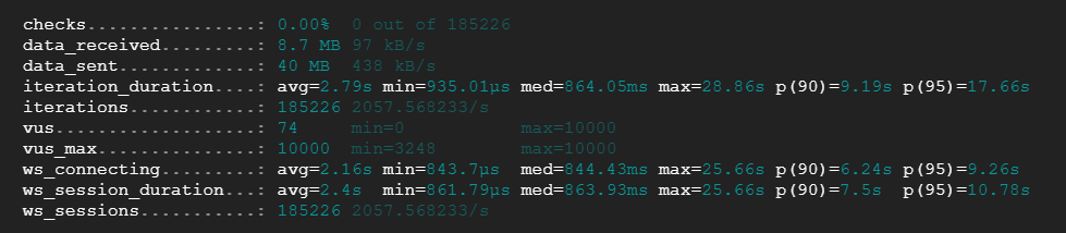- 1만 명 WebSocket 연결 테스트를 수행한 결과, 다음과 같은 문제점을 발견할 수 있었습니다.
