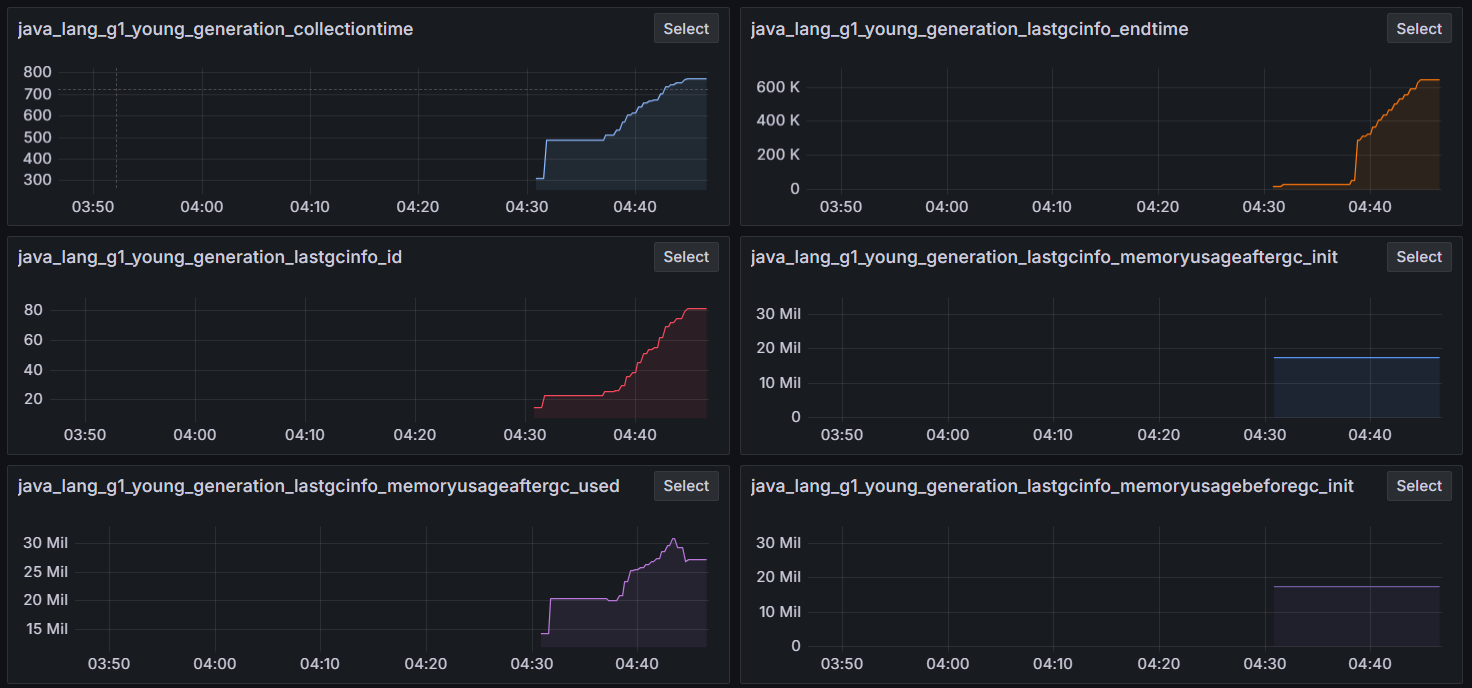- JVM 레벨에서 문제를 분석하고자, JMX Exporter를 설정한 후, Prometheus에서 스크래핑하여,