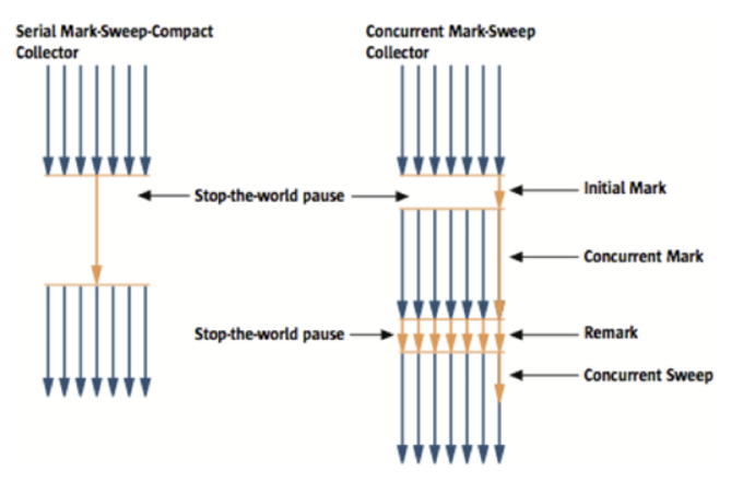 - Concurrent Mark & Sweep GC는 Inital Mark - Concurrent Mark - Remark - Concurrent Sweep 단계를 거쳐서